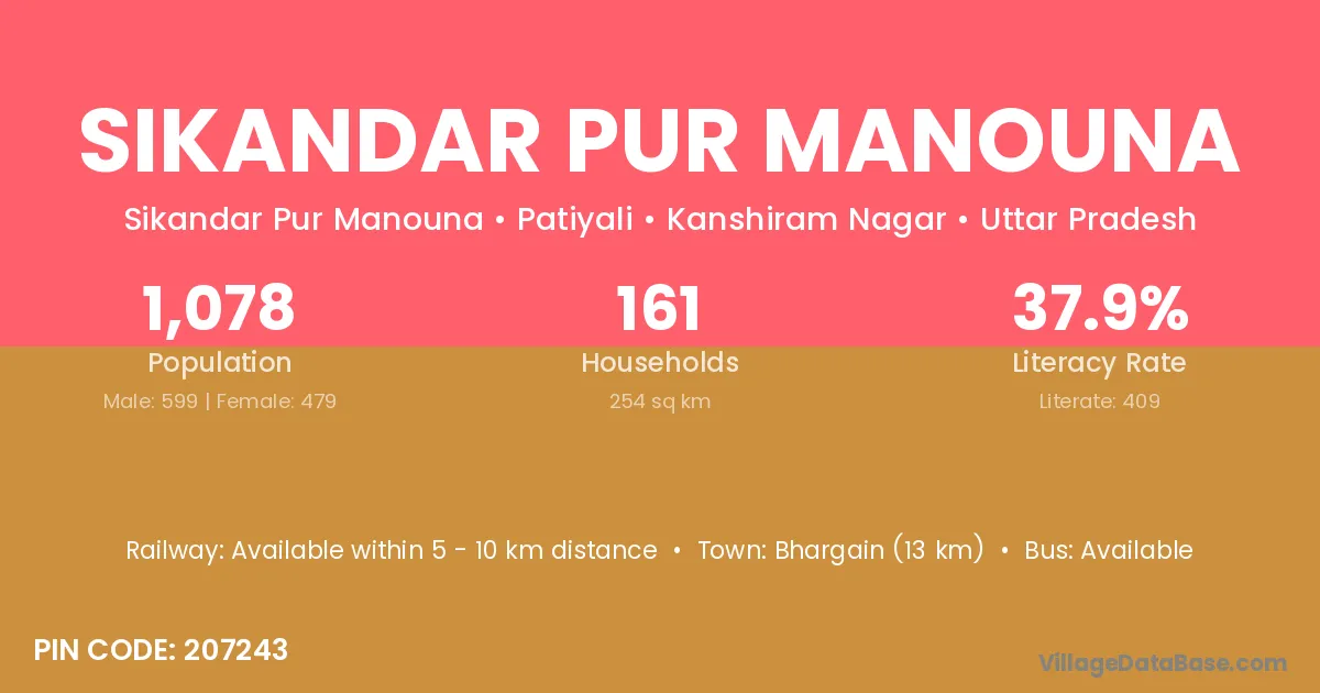 Bhargain (13 km) is the nearest town to Sikandar Pur Manouna village for major economic activities and is located approximately 13 km away.