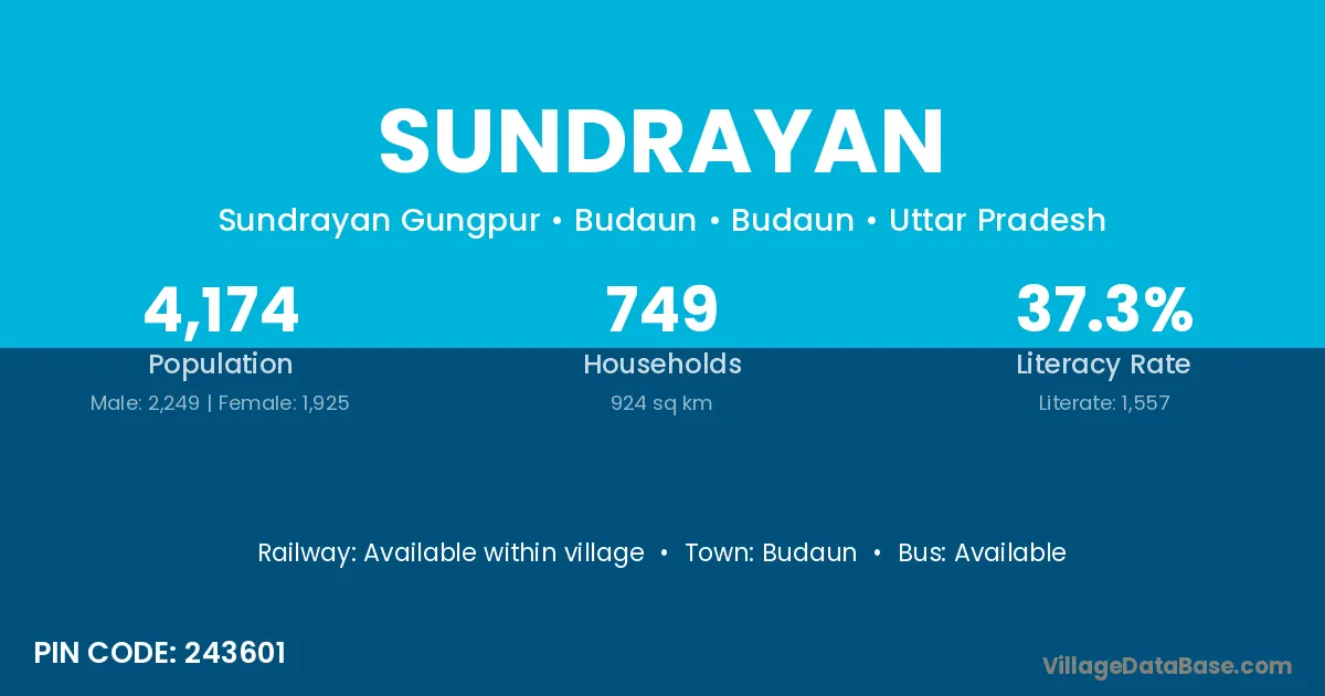 Kanshiram Nagar (19 km) is the nearest town to Sundrayan village for major economic activities and is located approximately 19 km away.