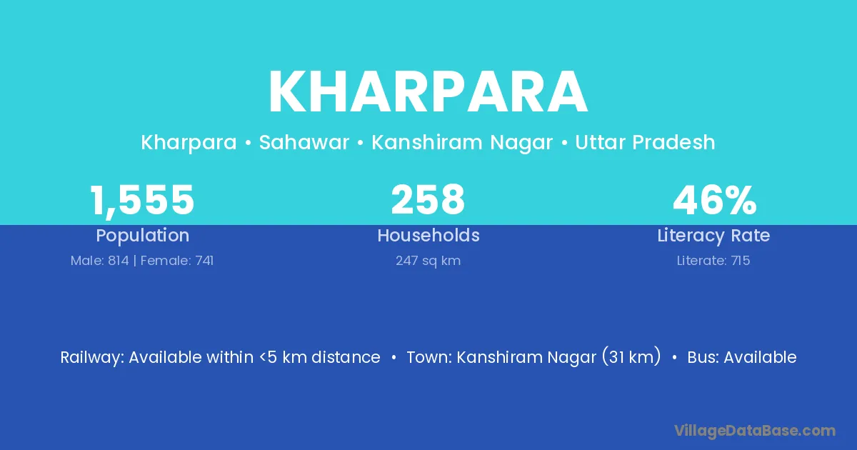 Kanshiram Nagar (31 km) is the nearest town to Kharpara village for major economic activities and is located approximately 31 km away.