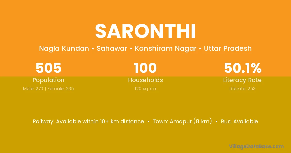 Saronthi village has a total population of 505 people, of which 270 are males and 235 are females.