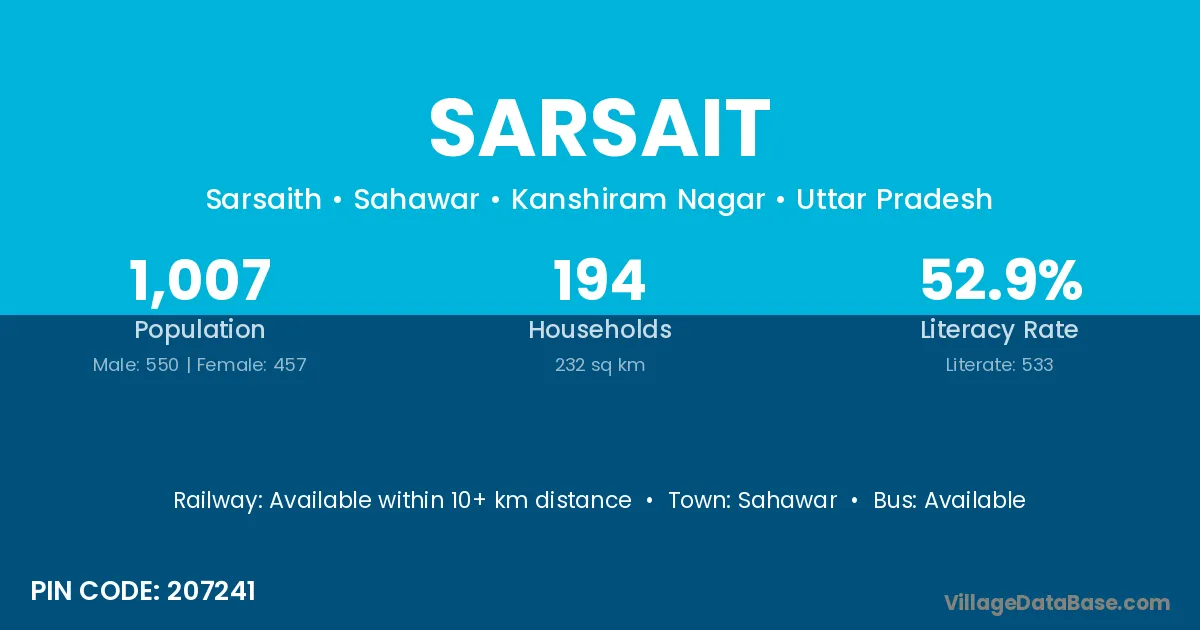 According to Census 2011 information, the village code of Sarsait village is 207241.