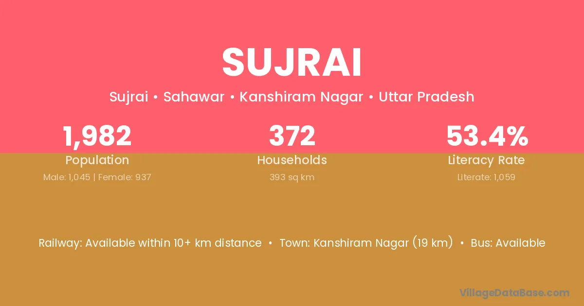 Kanshiram Nagar (19 km) is the nearest town to Sujrai village for major economic activities and is located approximately 19 km away.