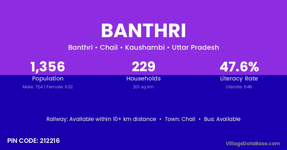 Banthri village has a total population of 1,356 people, of which 724 are males and 632 are females.