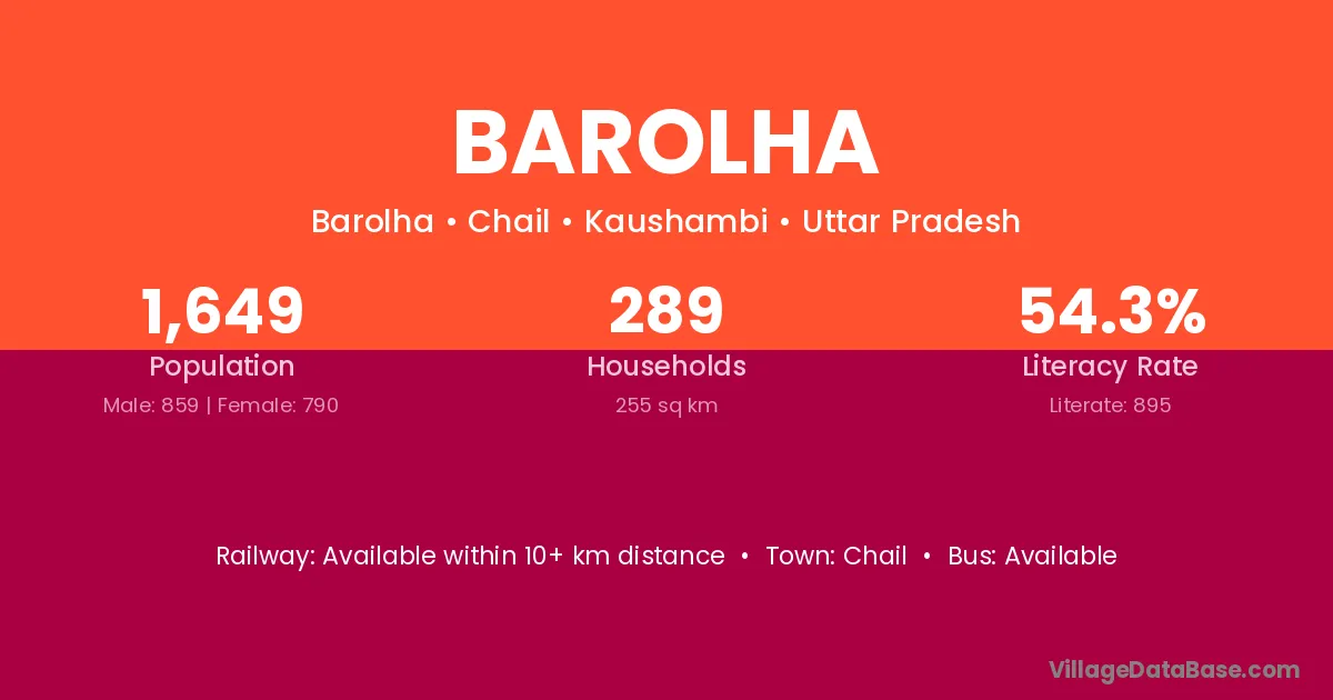 Barolha village has a total population of 1,649 people, of which 859 are males and 790 are females.
