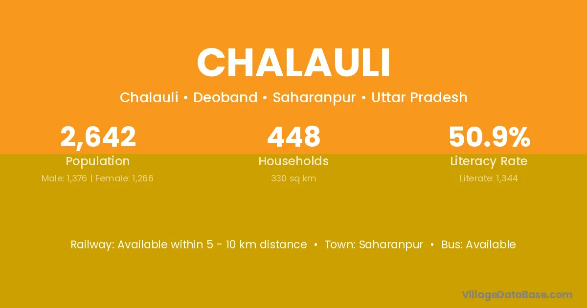 Chalauli village has a total population of 1,620 people, of which 875 are males and 745 are females.