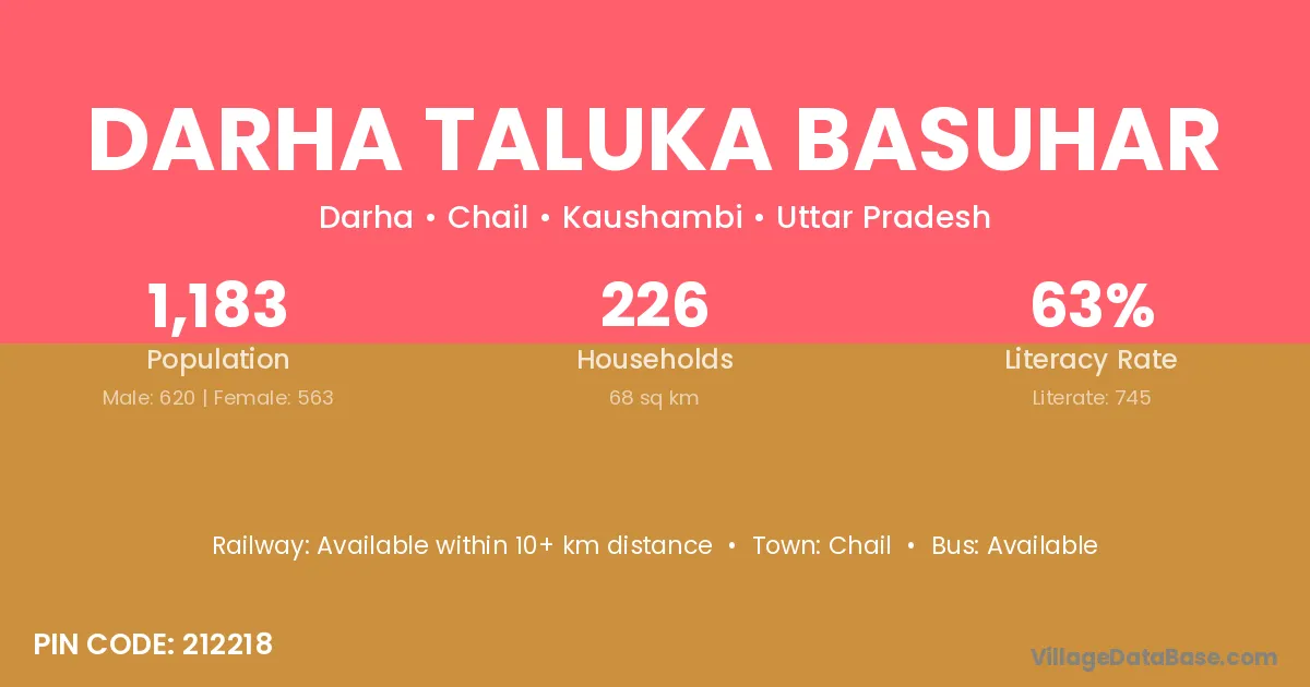 Darha Taluka Basuhar village has a total population of 1,183 people, of which 620 are males and 563 are females.
