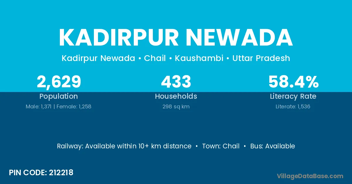 Kadirpur Newada village has a total population of 2,629 people, of which 1,371 are males and 1,258 are females.