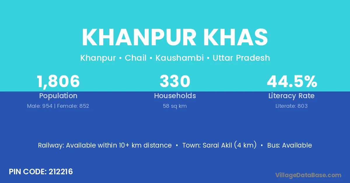 Sarai Akil (4 km) is the nearest town to Khanpur Khas village for major economic activities and is located approximately 4 km away.