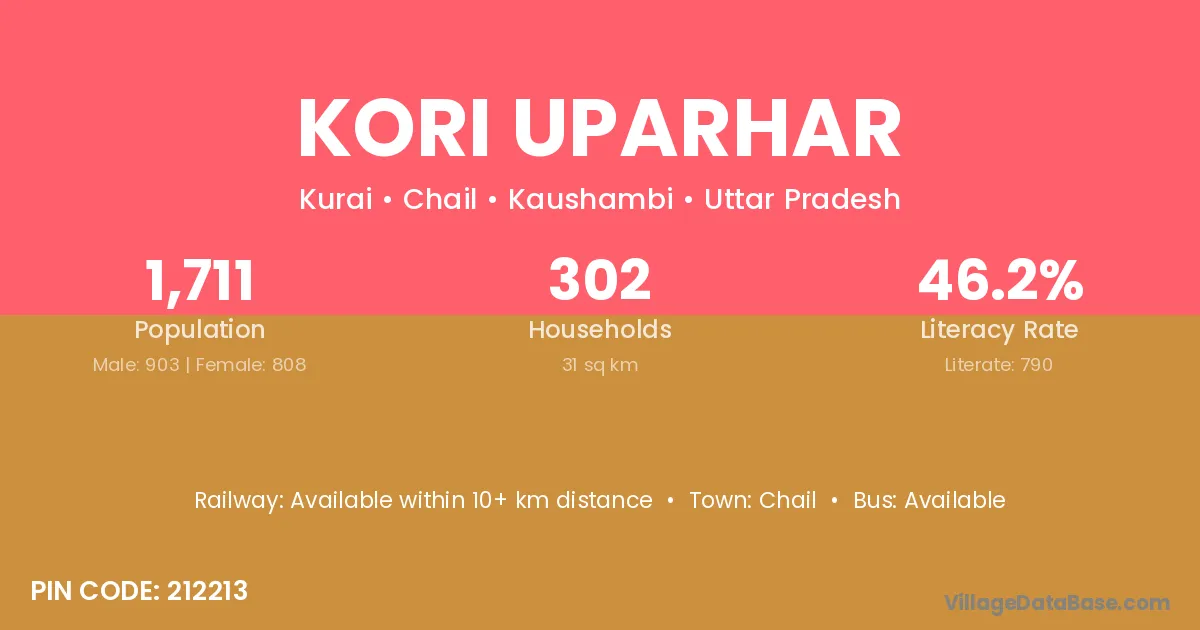 According to Census 2011 information, the village code of Kori Uparhar village is 212213.