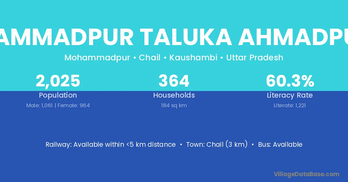 Chail (3 km) is the nearest town to Mohammadpur Taluka Ahmadpur As village for major economic activities and is located approximately 3 km away.