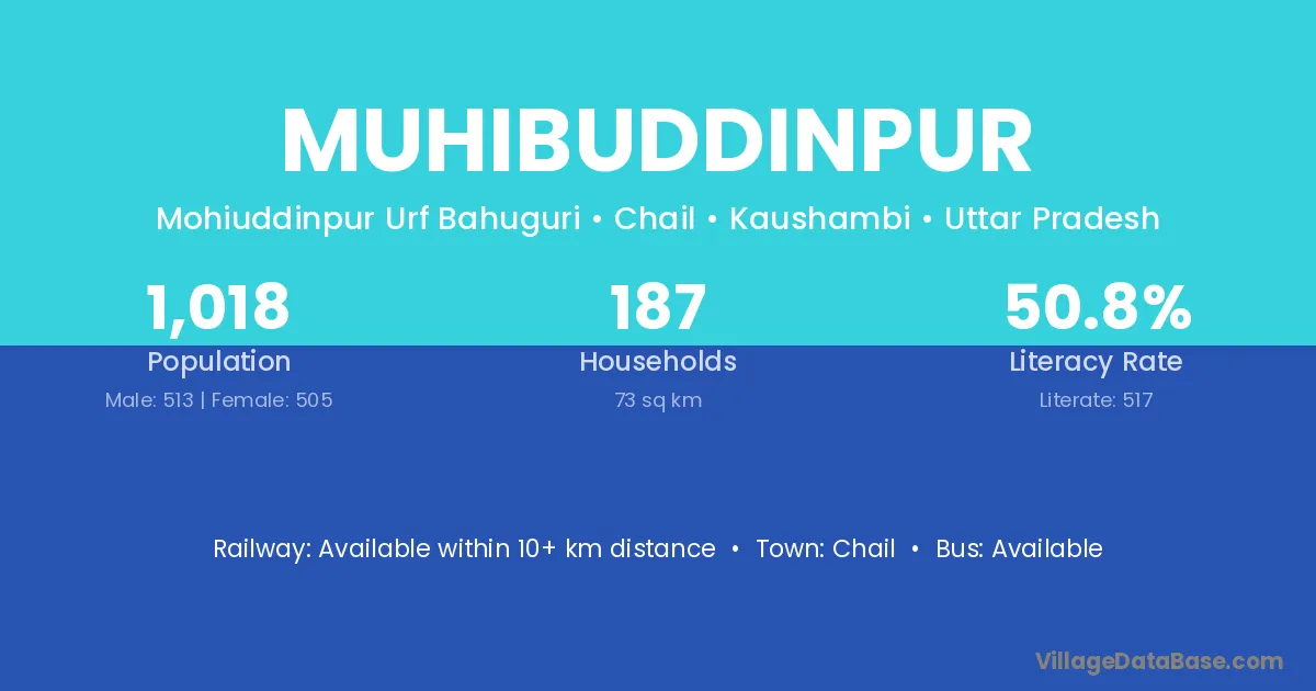 Muhibuddinpur village has a total population of 1,018 people, of which 513 are males and 505 are females.