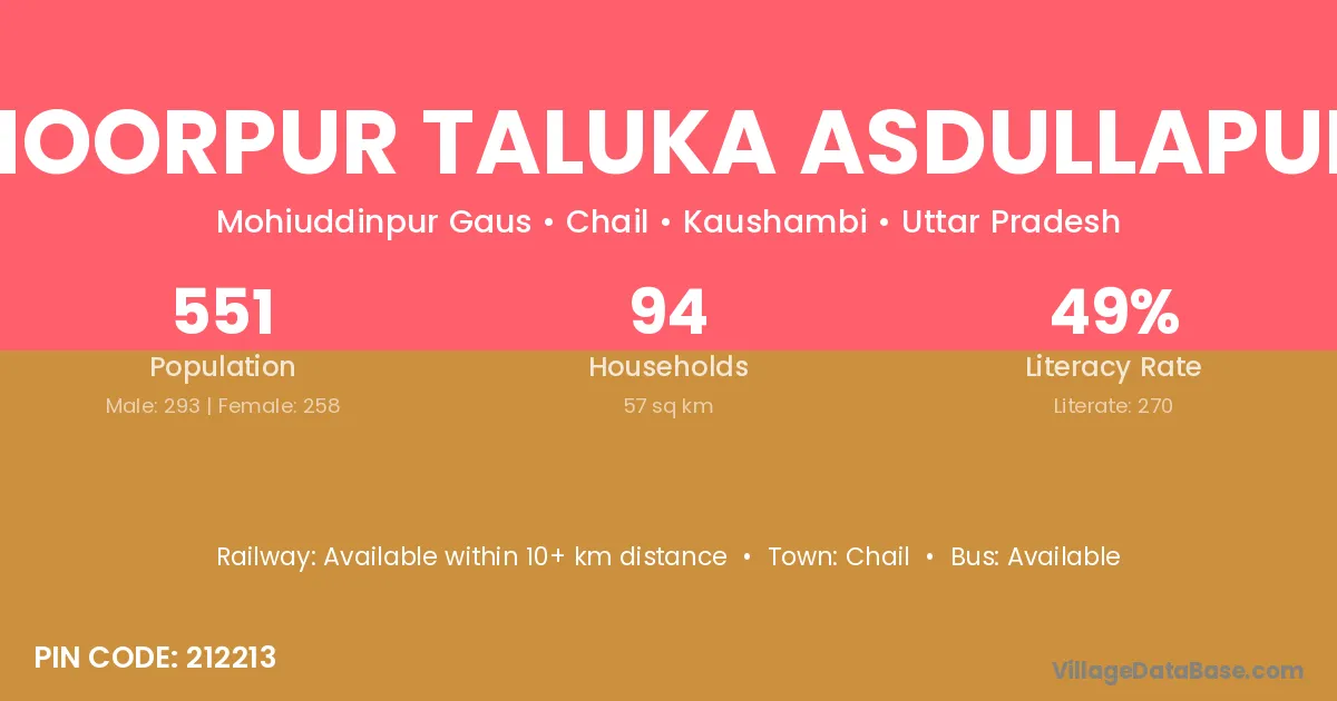 There are approximately 94 households in Noorpur Taluka Asdullapur village.