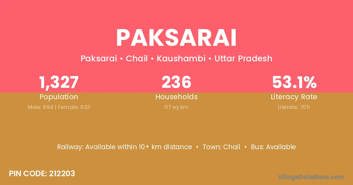 Paksarai village has a total population of 1,327 people, of which 694 are males and 633 are females.