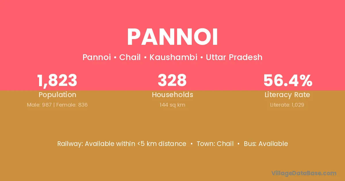 Pannoi village has a total population of 1,823 people, of which 987 are males and 836 are females.
