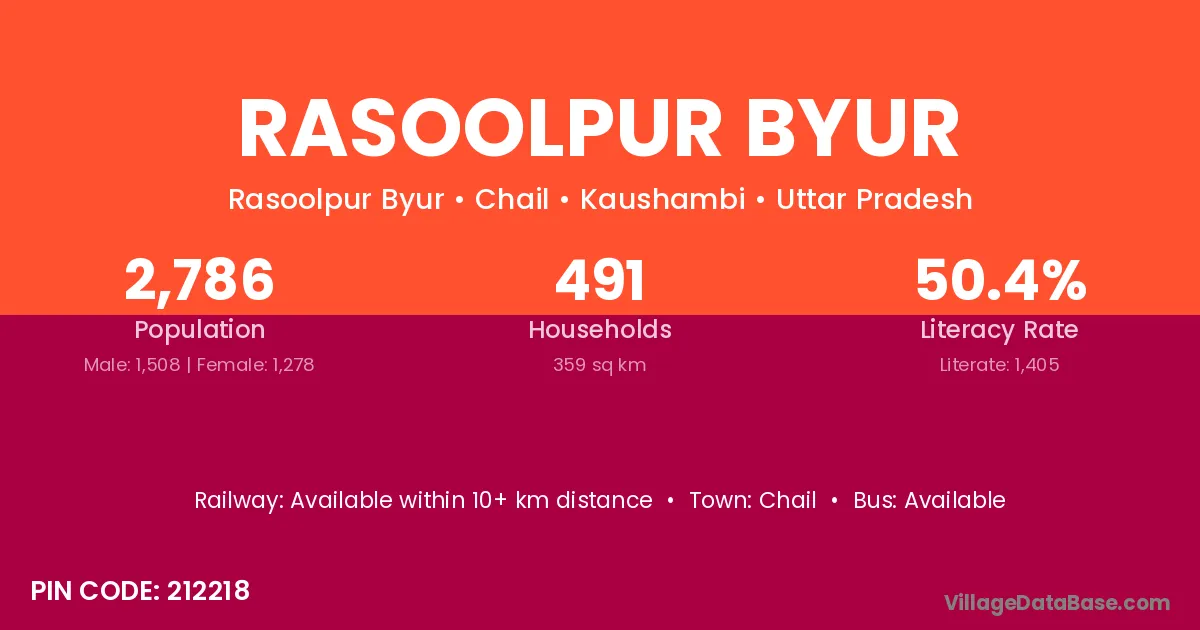 Rasoolpur Byur village has a total population of 2,786 people, of which 1,508 are males and 1,278 are females.