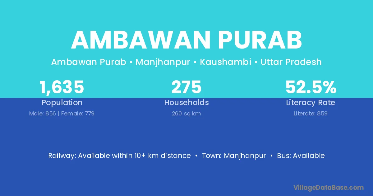 Ambawan Purab village has a total population of 1,635 people, of which 856 are males and 779 are females.