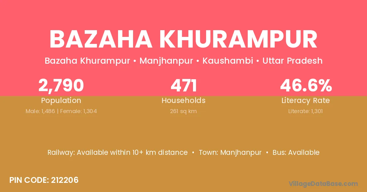 Manjhanpur is the nearest town to Bazaha Khurampur village for major economic activities