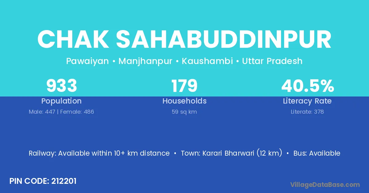 Karari Bharwari (12 km) is the nearest town to Chak Sahabuddinpur village for major economic activities and is located approximately 12 km away.