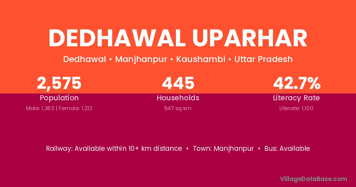 Manjhanpur is the nearest town to Dedhawal Uparhar village for major economic activities