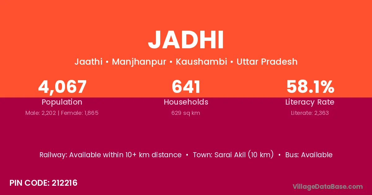 Sarai Akil (10 km) is the nearest town to Jadhi village for major economic activities and is located approximately 10 km away.
