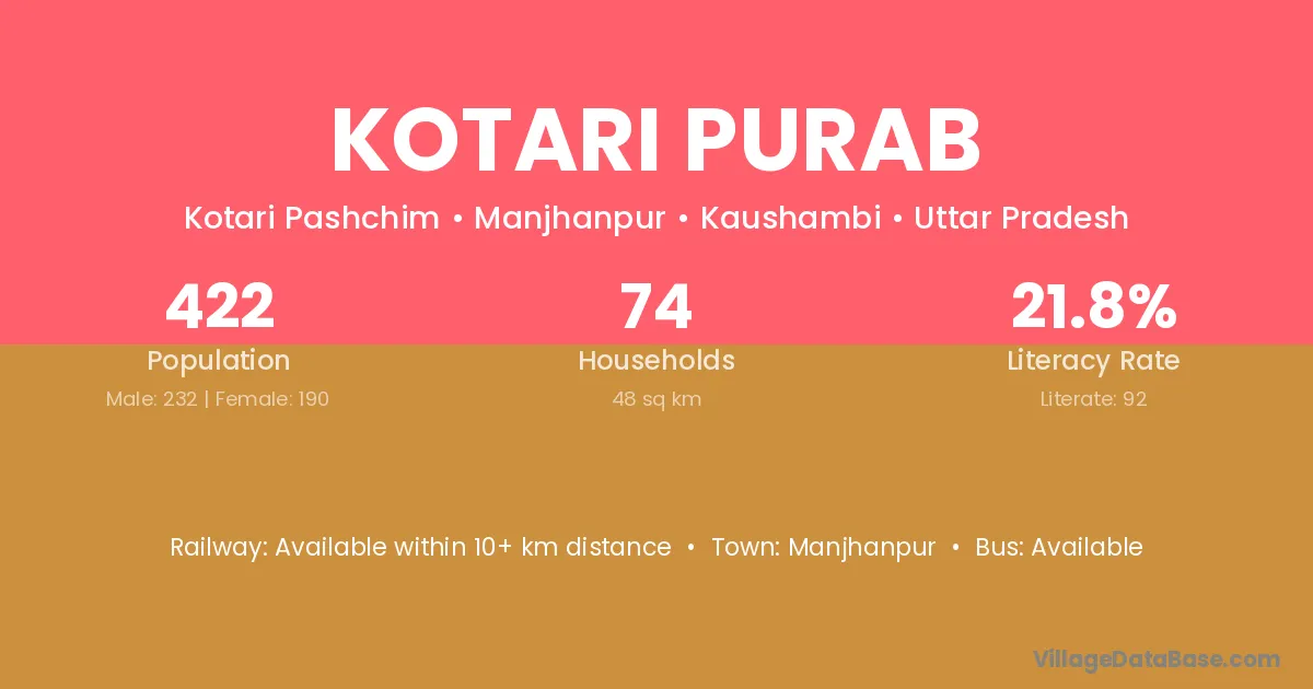 Kotari Purab village has a total population of 422 people, of which 232 are males and 190 are females.