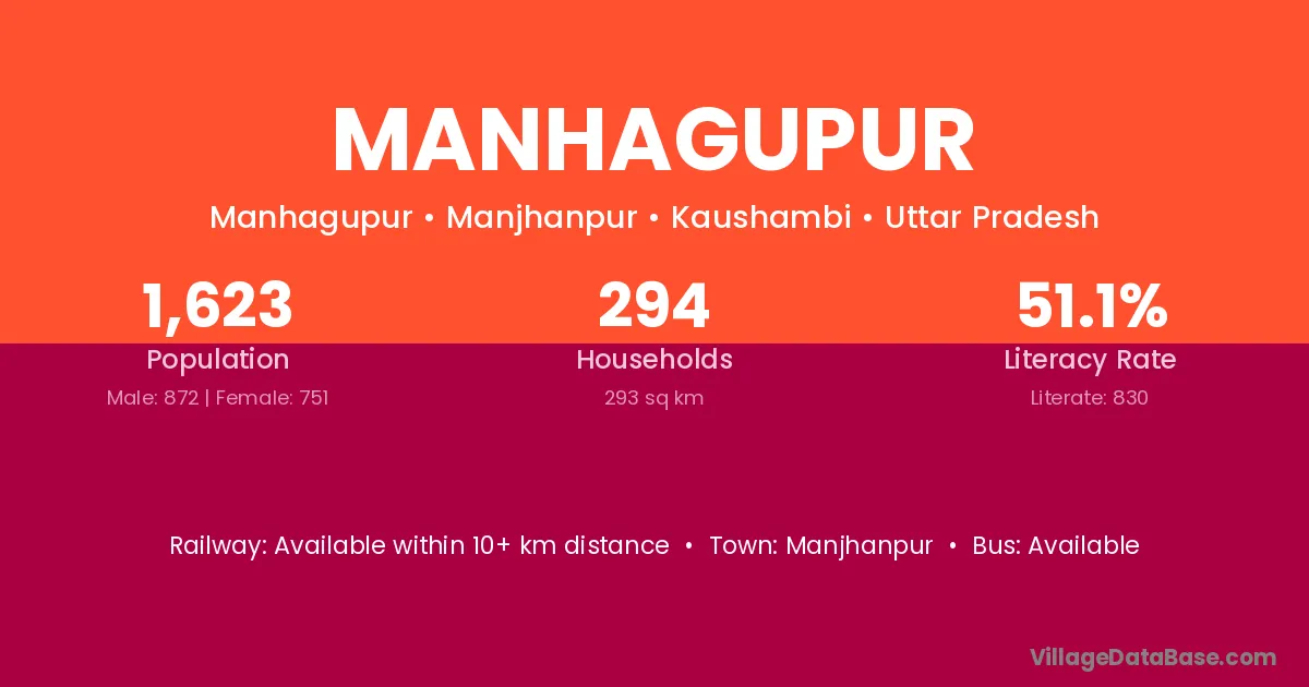 Manhagupur village has a total population of 1,623 people, of which 872 are males and 751 are females.