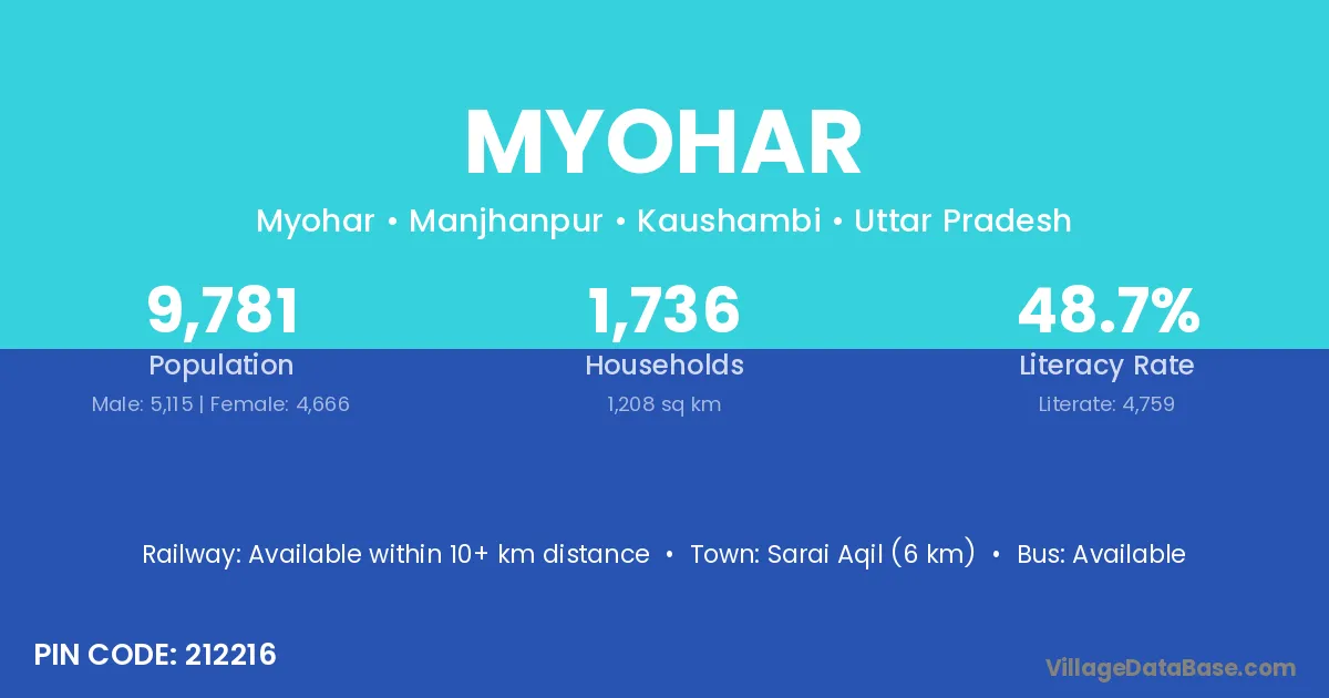 Sarai Aqil (6 km) is the nearest town to Myohar village for major economic activities and is located approximately 6 km away.