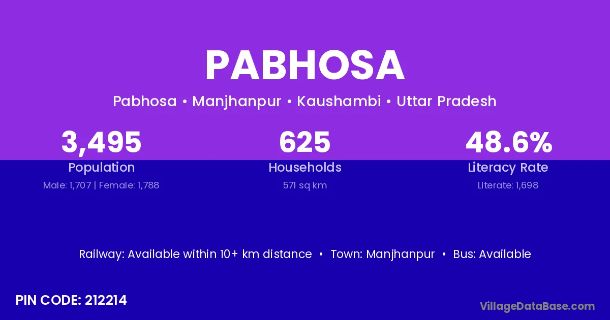 Pabhosa village has a total population of 3,495 people, of which 1,707 are males and 1,788 are females.