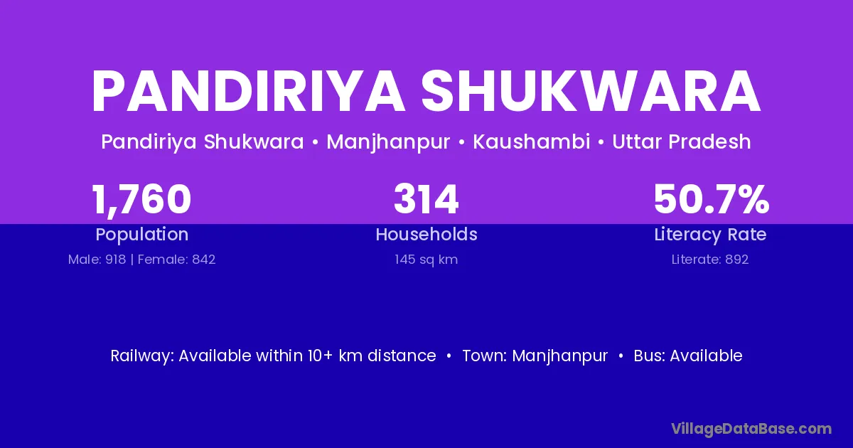 Pandiriya Shukwara village has a total population of 1,760 people, of which 918 are males and 842 are females.