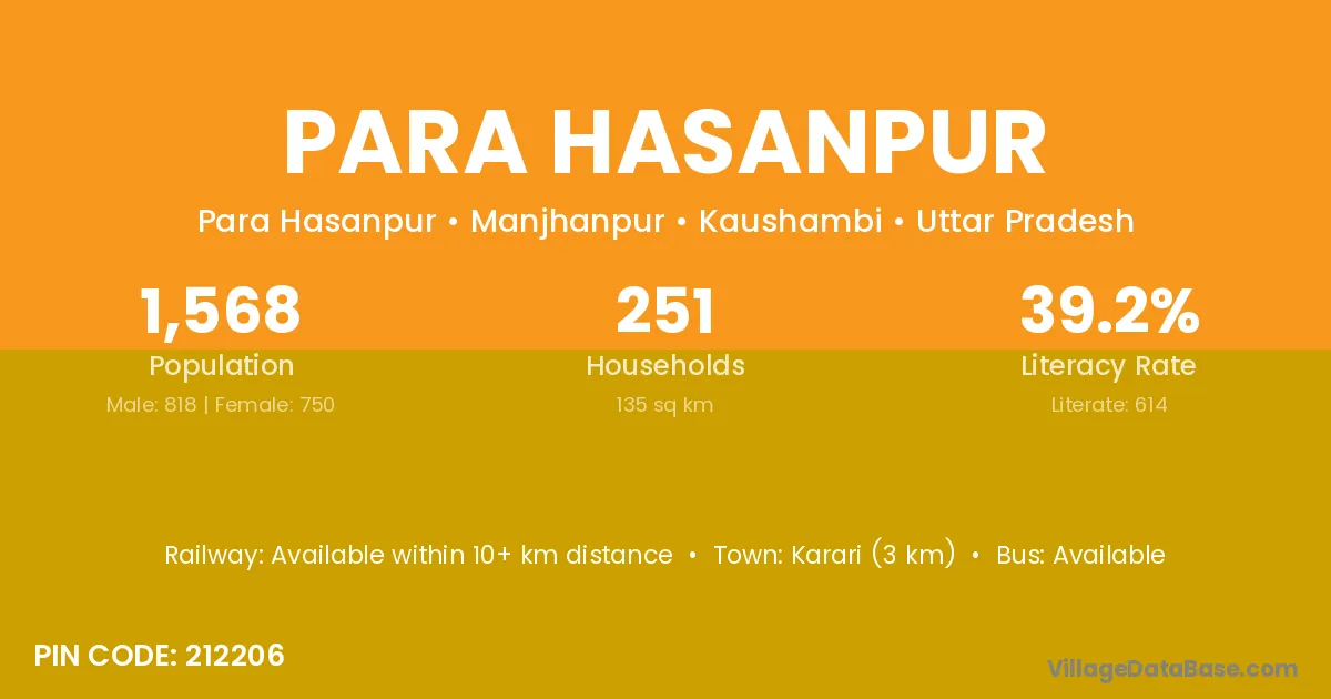 Karari (3 km) is the nearest town to Para Hasanpur village for major economic activities and is located approximately 3 km away.