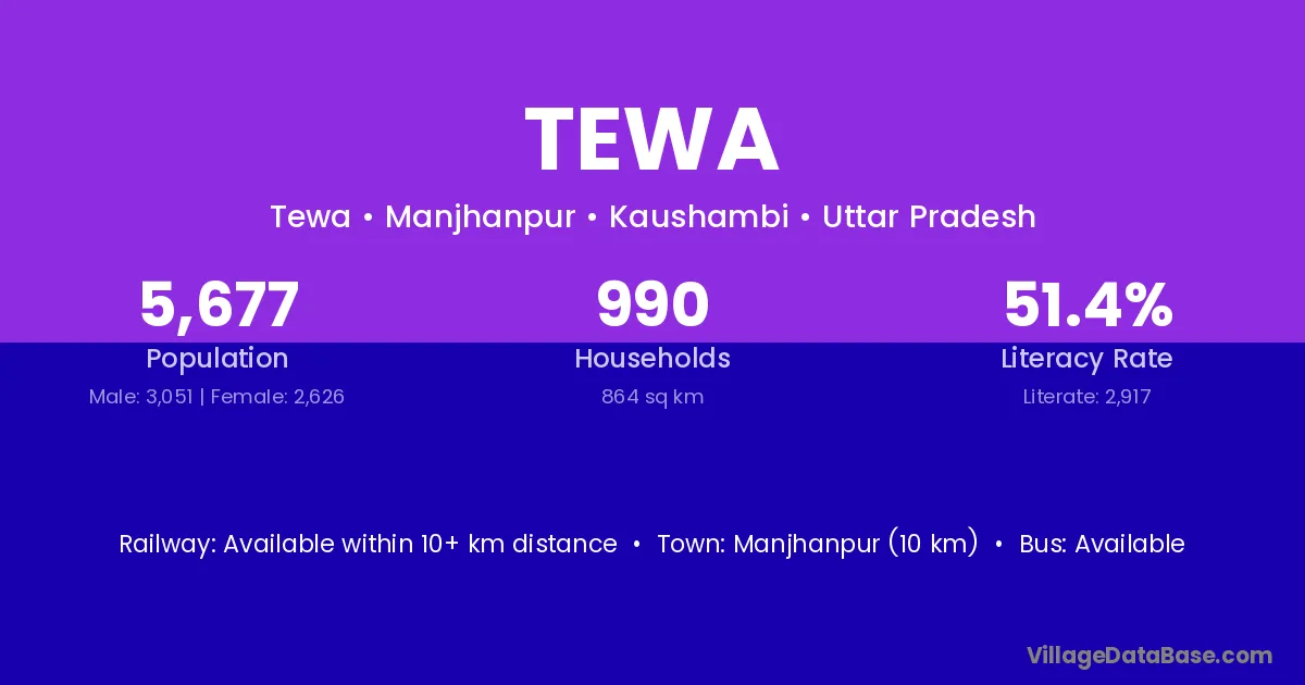 Manjhanpur (10 km) is the nearest town to Tewa village for major economic activities and is located approximately 10 km away.