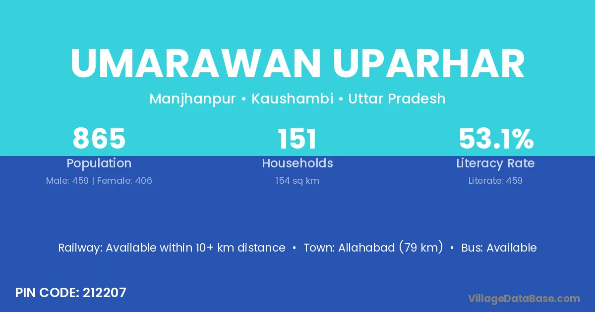 Allahabad (79 km) is the nearest town to Umarawan Uparhar village for major economic activities and is located approximately 79 km away.