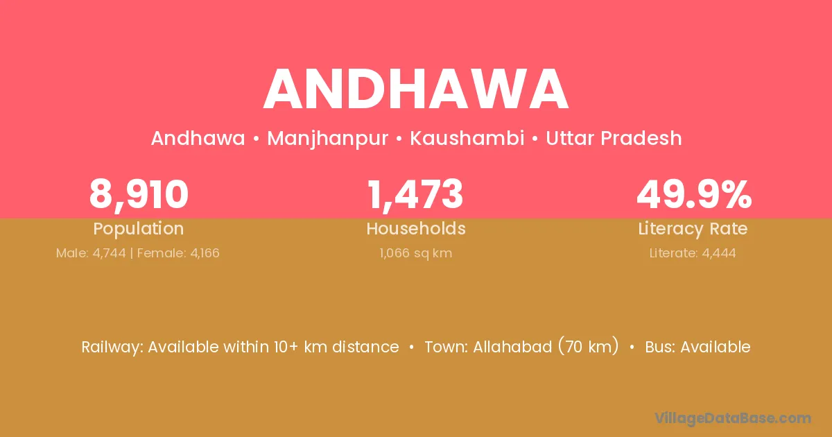 Allahabad (56 km) is the nearest town to Andhawa village for major economic activities and is located approximately 56 km away.