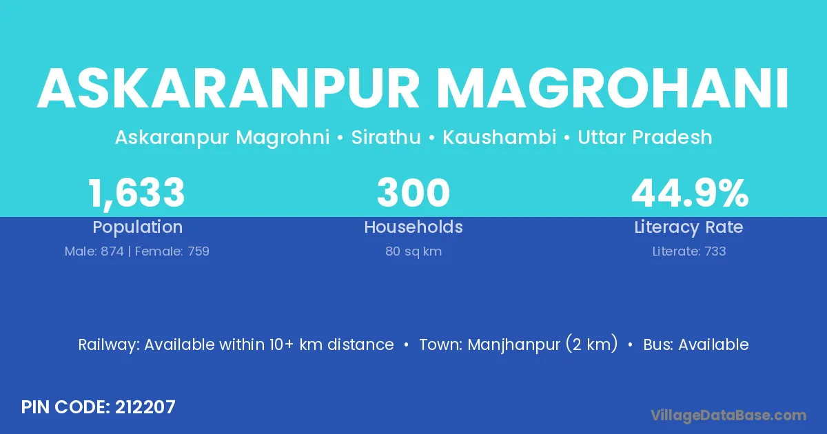 Manjhanpur (2 km) is the nearest town to Askaranpur Magrohani village for major economic activities and is located approximately 2 km away.