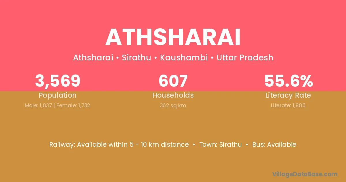 There are approximately 607 households in Athsharai village.