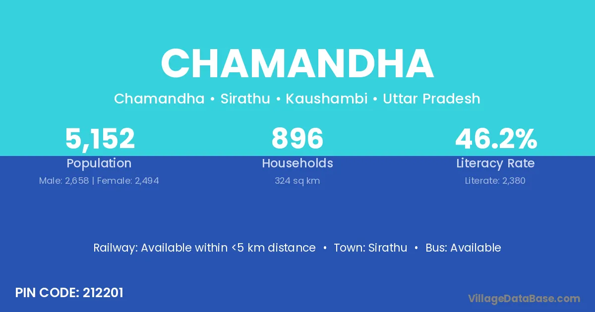 Chamandha village has a total population of 5,152 people, of which 2,658 are males and 2,494 are females.