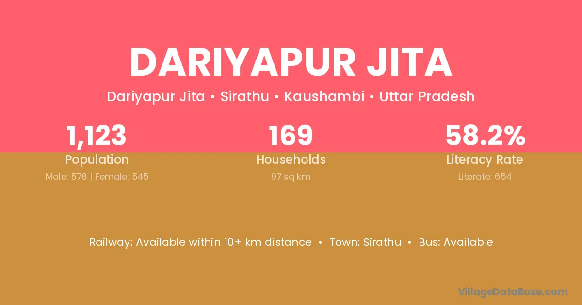 Dariyapur Jita village has a total population of 1,123 people, of which 578 are males and 545 are females.
