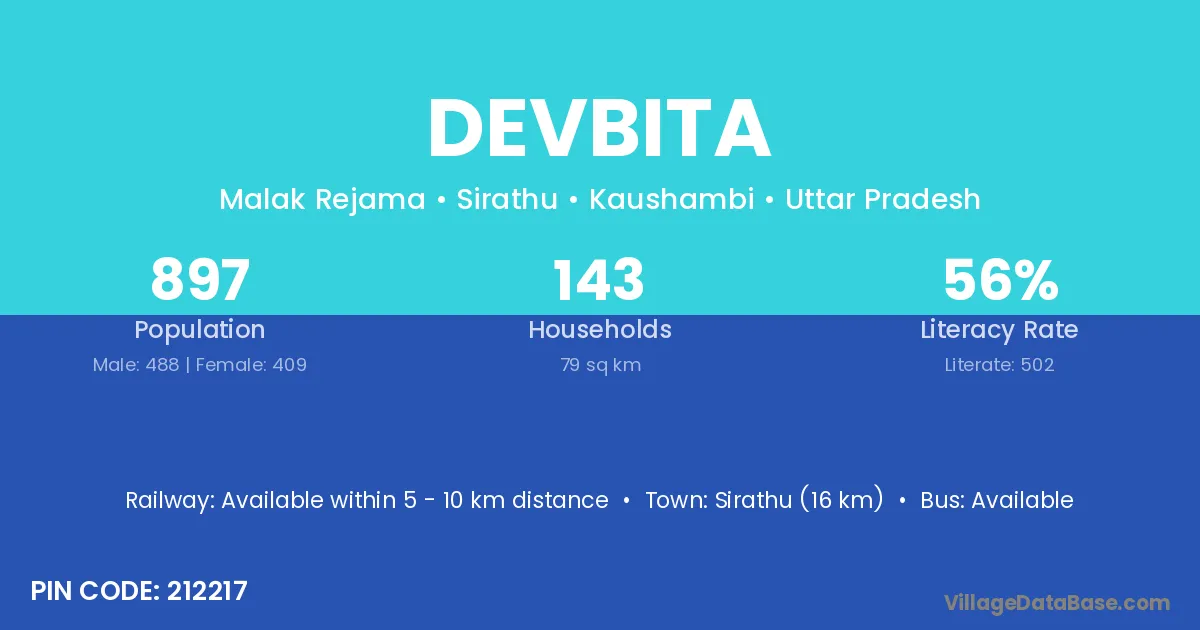 Sirathu (16 km) is the nearest town to Devbita village for major economic activities and is located approximately 16 km away.