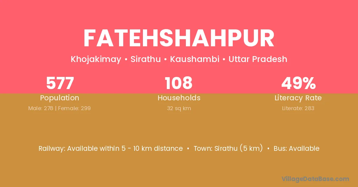 Sirathu (5 km) is the nearest town to Fatehshahpur village for major economic activities and is located approximately 5 km away.