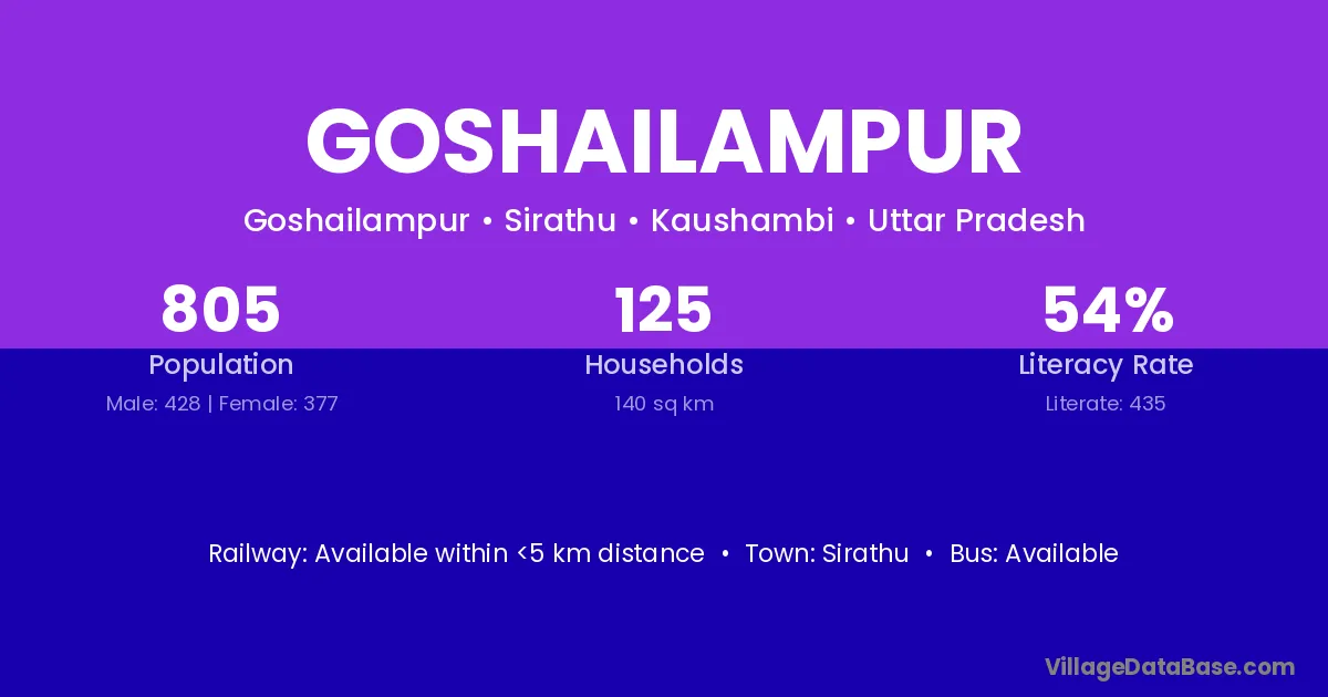 Sirathu is the nearest town to Goshailampur village for major economic activities