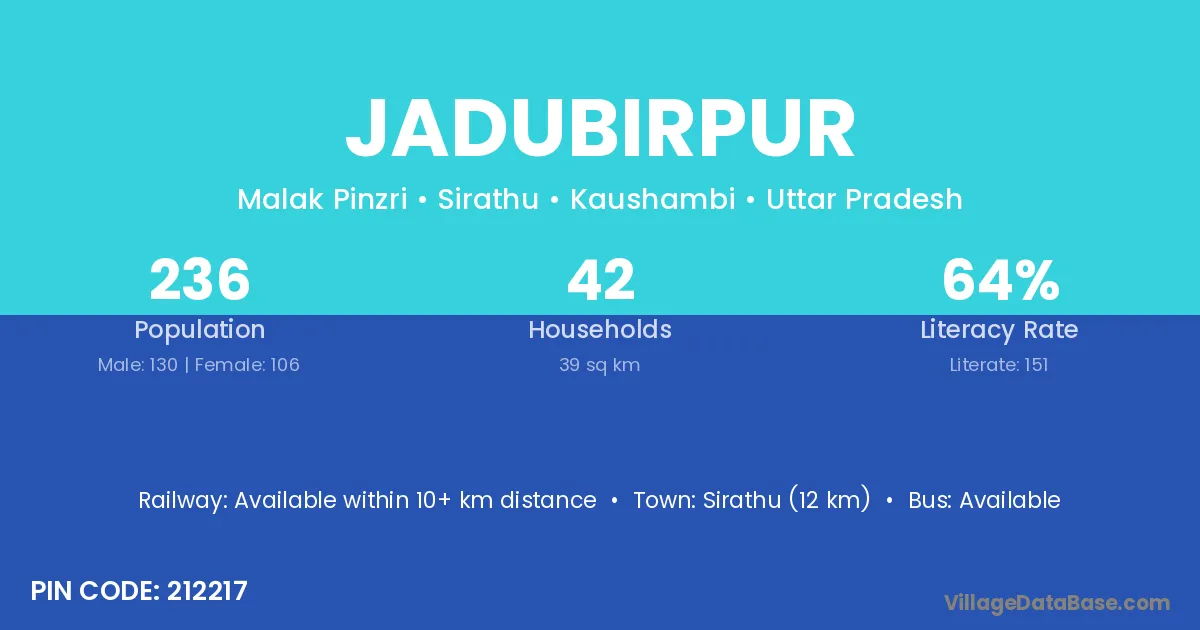 Sirathu (12 km) is the nearest town to Jadubirpur village for major economic activities and is located approximately 12 km away.