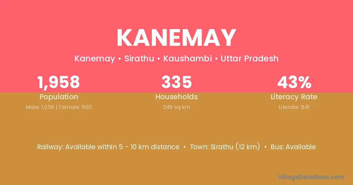 Sirathu (12 km) is the nearest town to Kanemay village for major economic activities and is located approximately 12 km away.