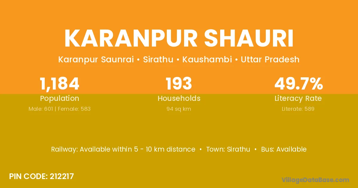 Karanpur Shauri village has a total population of 1,184 people, of which 601 are males and 583 are females.