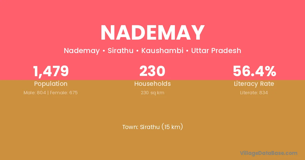 Sirathu (15 km) is the nearest town to Nademay village for major economic activities and is located approximately 15 km away.