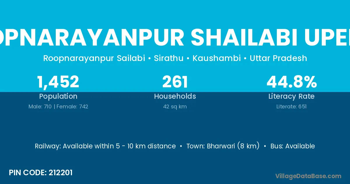 Bharwari (8 km) is the nearest town to Roopnarayanpur Shailabi Uperha village for major economic activities and is located approximately 8 km away.