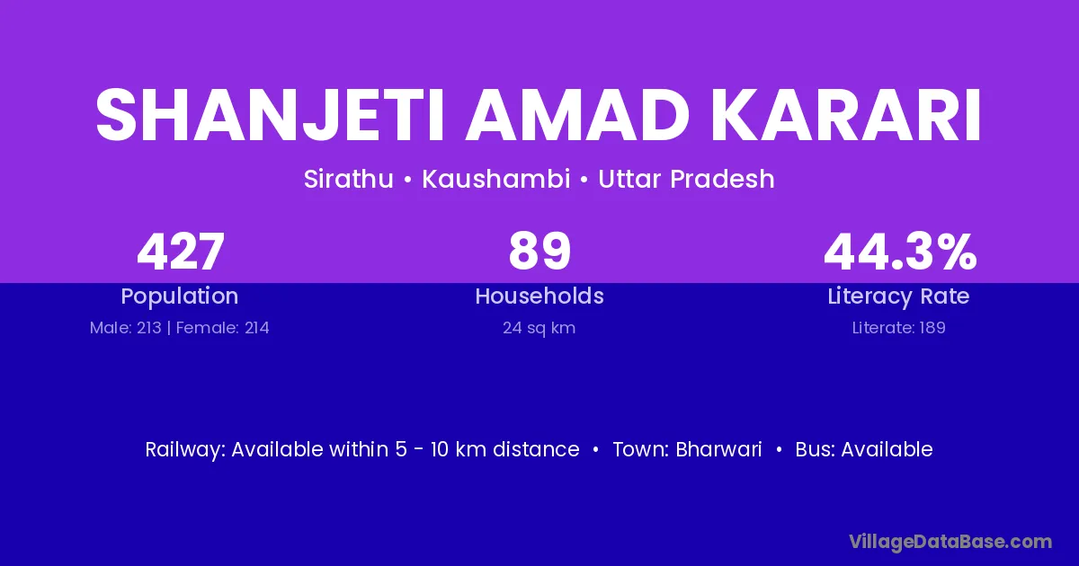 Bharwari is the nearest town to Shanjeti Amad Karari village for major economic activities