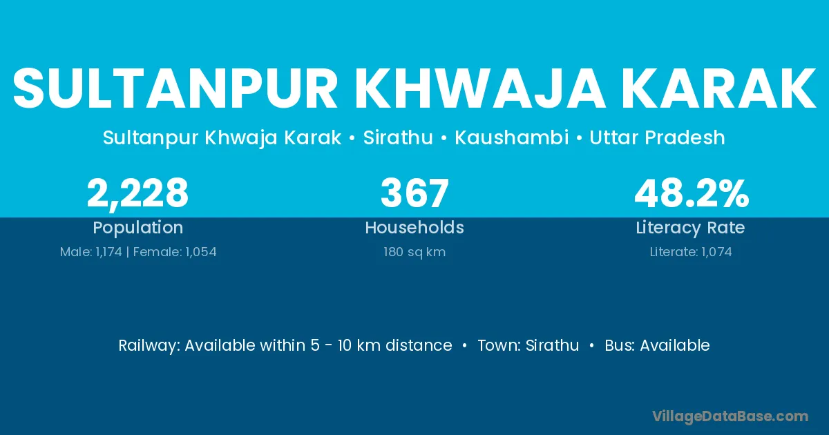 Sultanpur Khwaja Karak village has a total population of 2,228 people, of which 1,174 are males and 1,054 are females.