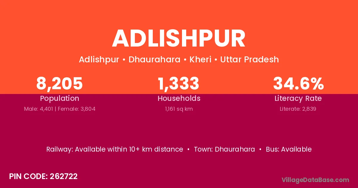 Adlishpur village is located in the Dhaurahara Tehsil of the Kheri district in Uttar Pradesh .