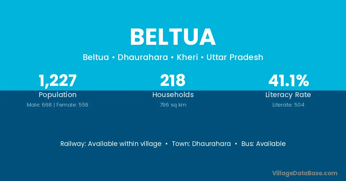 Beltua village has a total population of 1,227 people, of which 668 are males and 559 are females.