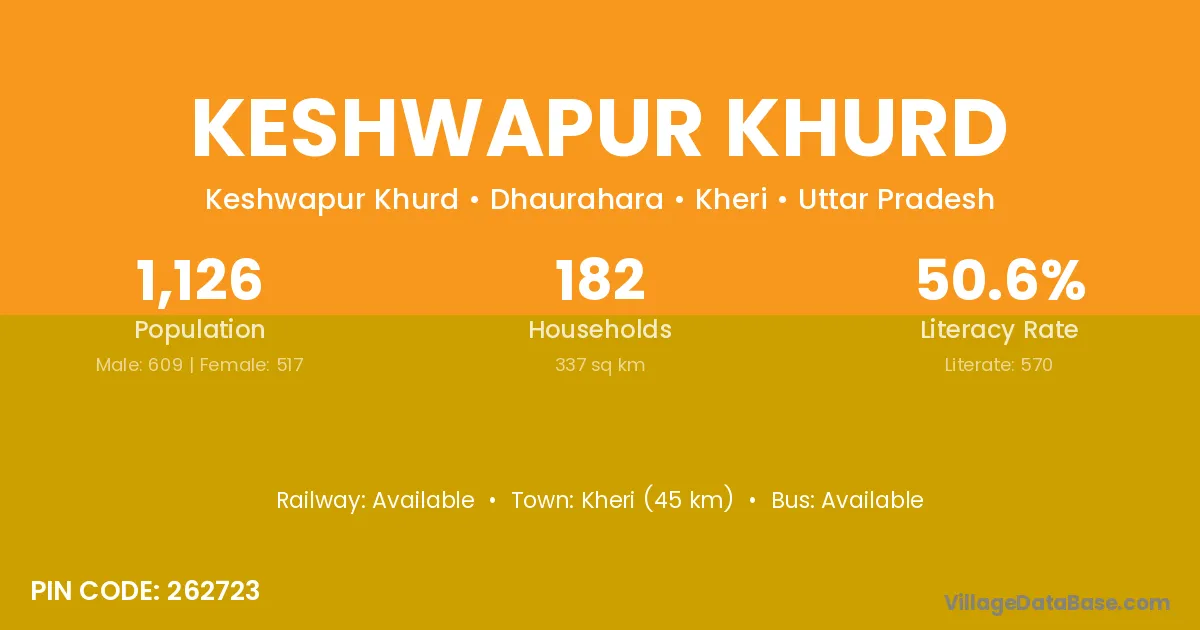 Kheri (45 km) is the nearest town to Keshwapur Khurd village for major economic activities and is located approximately 45 km away.